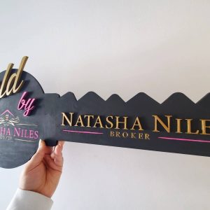 Each piece is produced with precision and can be customized with text or logos. The sign is lightweight yet durable, making it suitable for repeated use in professional settings. Dimensions vary depending on design, with smooth edges and a polished finish for a modern look.